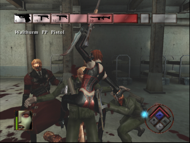 Рыжеволосая сексапильная полукровка имеет в арсенале не только уникальные способности, но и острые клыки, по пистолету в каждой руке и остро заточенные клинки, прикрепленные к запястьям. Беспощадная девушка в обтягивающем костюме на протяжении всей игры будет хладнокровно уничтожать немецко-фашистских агрессоров путем их расчленения и эротично высасывать кровь у кого ни попадя. Путешествуя по многоуровневым мирам Луизианы, Аргентины и Германии, она сразится с патрулями нацистов, мутантами, болотными тварями, древними паразитирующими монстрами и животными-кровососами.